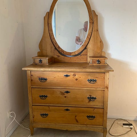 Spegeldelen kan tas bort då är byrån 97cm hög.