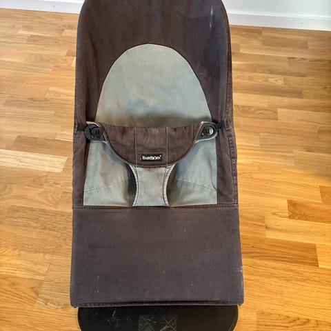 Babysitter från bästa märket - Babybjörn. Den är synligt använd men fungerar som den ska. Klädseln kan tvättas eller så kan man köpa ny klädsel och trä på.