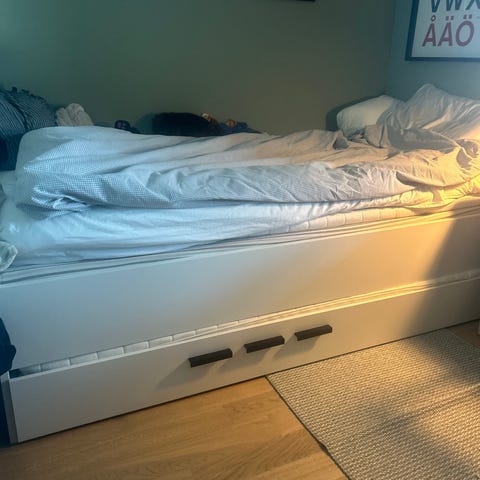 En 10 cm tjock och 3-delad madrass till utdragbar barnsäng (växasäng). Växer med ditt barn och den utdragbara sängen upp till 200 cm (80x200cm). Använd av ett barn, i gott skick.
