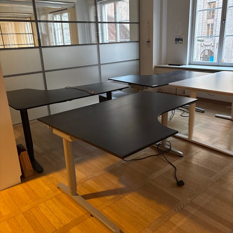 Säljer att superfint skriv bord från Ikea. Skrivbordet går att höja och sänka. Det har förlorat lite färg som du kan se om du zoomar in på bilden under a4 pappret men går att måla över om man skulle störa sig på det.