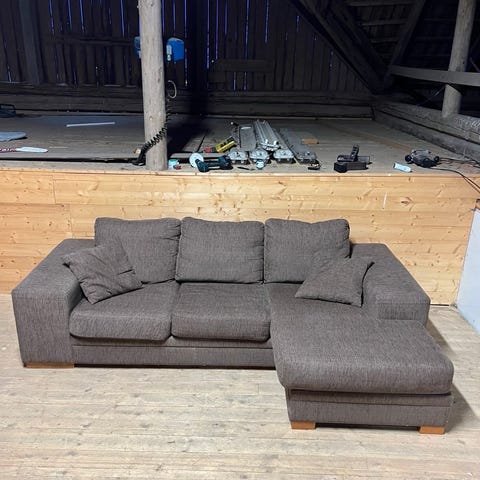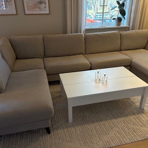 Mycket omtyckt och mjuk soffa med bra kvalitet i kuddarna. Tyget liknar sammet vilket gör att färgen ser ut att skifta på bild. Soffan är i mycket fint skick.