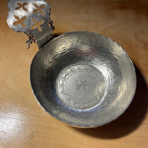 Hamrat tenn trähandtag höjd 22cm stämpel på undersidan