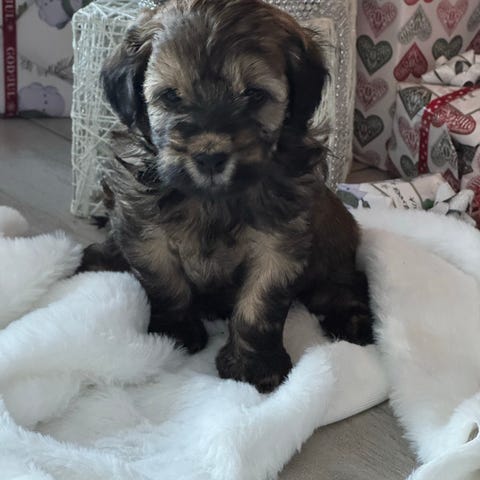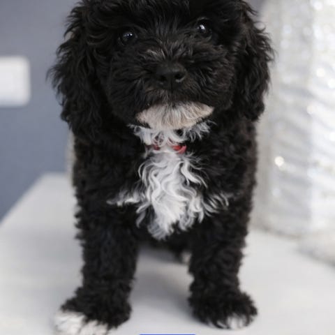 Pappa är dvärg pudel och väger ca 4,4 kilo och är 32 cm i mankhöjd.