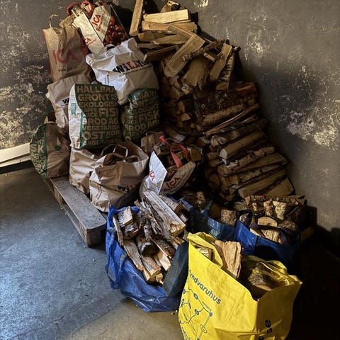 Torr kapad och kluven brasved som torkats och lagrats inomhus säljes i löst mått. Veden består till största delen av björk, men finns enstaka bitar av tall, lönn, asp, sälj och gran. Uppskattningsvis är det cirka 90% björk.