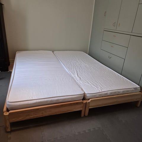 inklusive Vågstranda pocketresårmadrass fast med komfortzoner, ljusblå. Bredd 160, höjd 28, längd 200.