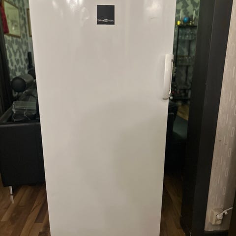 Elektro Helios kylskåp med flera hyllor i glas och metall. Vit färg och standardstorlek. Passar för allmän användning i kök eller andra utrymmen där kylförvaring behövs. Lämplig till källaren extra kyl.