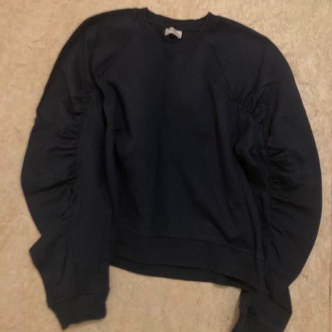 By Malene Birger tröja i ljusbeige färg, tillverkad av 49 % ull, 30 % mohair, 21 % polyamid. Damstorlek L. Tröjan har en kabelstickad design, vid ärm, lös passform och en V-ringning.
