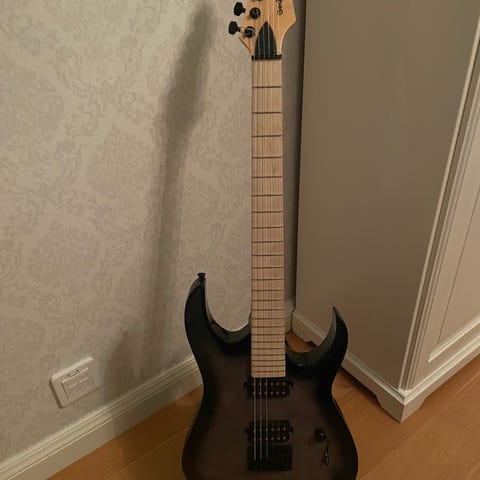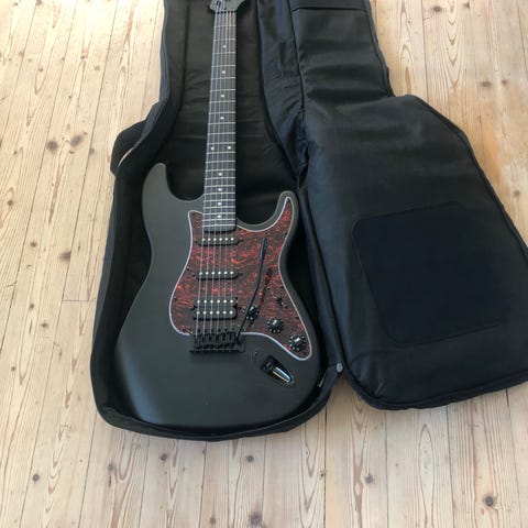 Harley benton progressiv series, snabb skön gitarr med ganska heta mickar Emg liknande ljud mycket metal för liten peng, inga dings eller andra märken knappt spelad på
