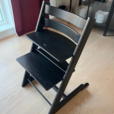 Säljer två Stokke Clikk barnstolar i mycket bra begagnat skick. Kompletta med bricka och fotstöd.
