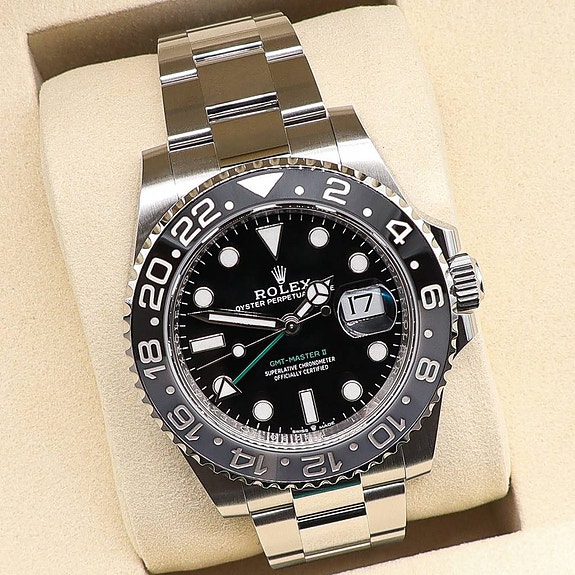 Klockan levereras full set och komplett med samtliga boxar, certifikat, manualer samt grön och vit Rolex-tag.