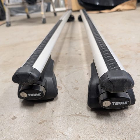 Thule Wingbar edge, har tidigare suttit på en Jeep Cherokee (2015). Längd 86 och 95 cm.