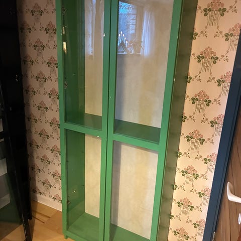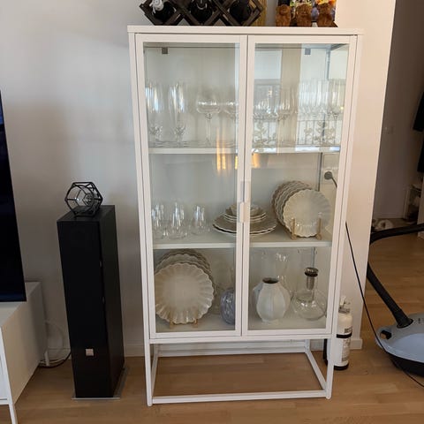 Ett IKEA Detolf vitrinskåp i vitt säljes mot avhämtning. Vitrinen säljes tom och utplockad se bilder. Hyllplan i glas följer självklart med.