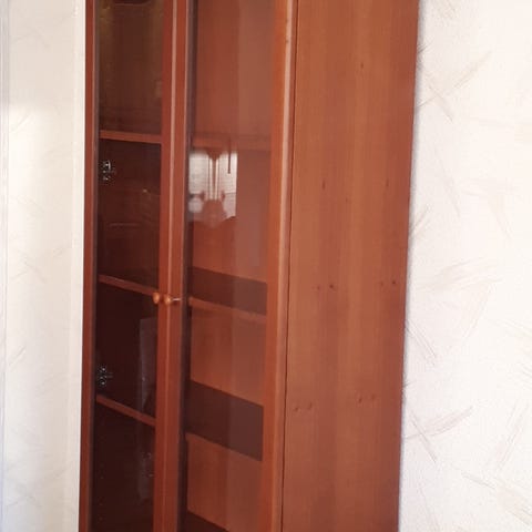 Säljer ett vitrinskåp i väldigt bra skick i oljad björk på grund av flytt.