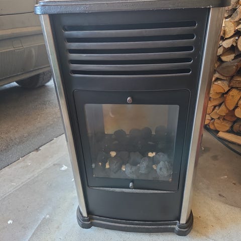 Infraröd gasolkamin med elfläkt. Mycket effektiv värmekälla på 4,2 kW.