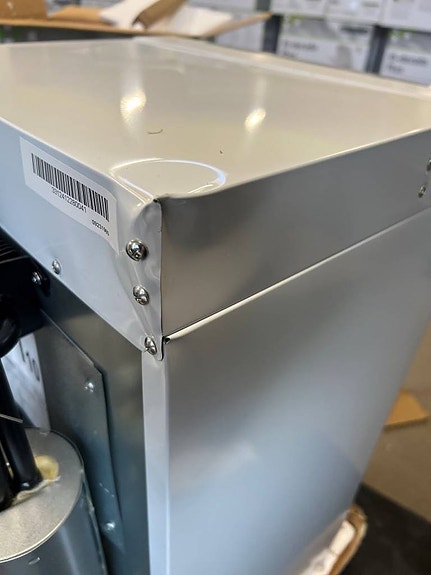 Denna kamin har en buckla i sidan, inget som påverkar funktionen.