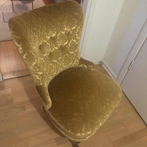 Fin modell av den klassiska Emma fåtöljen som med lite kärlek skulle kunna bli hur fin som helst.