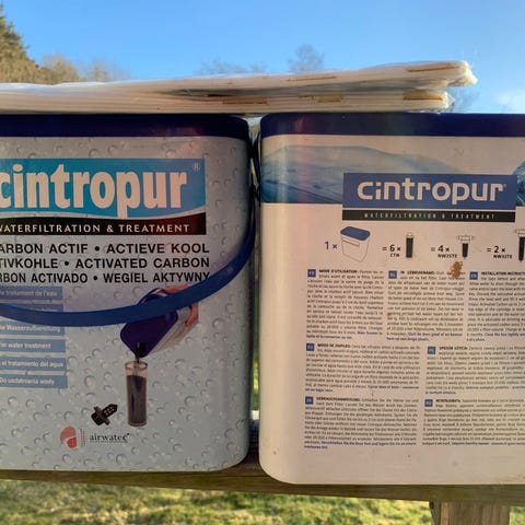 Resten av en 25kg säck med järnvitriol, eller järnsulfat som det också heter.