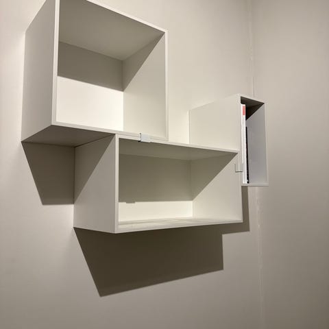 Har använts som nattduksbord. Går att montera vertikalt och horisontellt. 500kr styck. 800 för båda