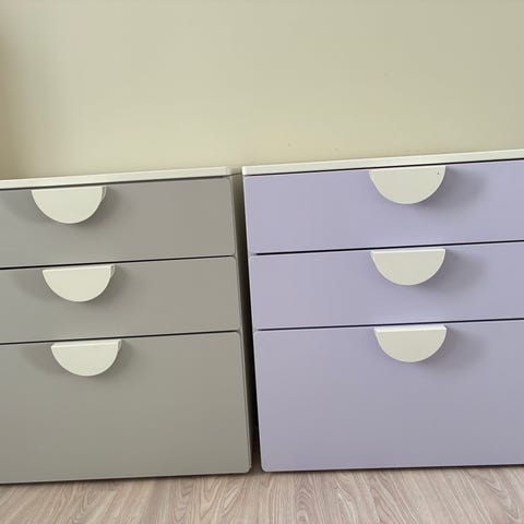 IKEA barnmöbler med förvaringslådor i rosa färg. Lådorna är utformade för att organisera och lagra barnens saker på ett praktiskt sätt.