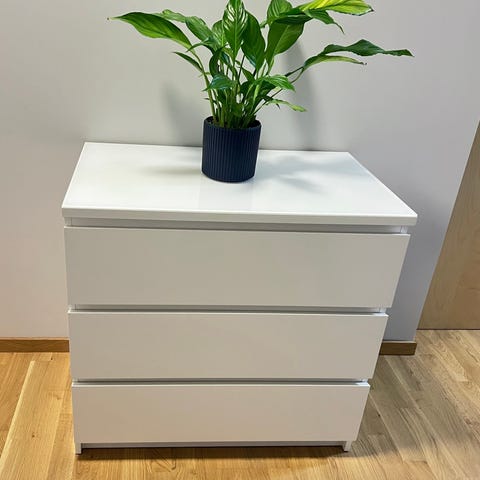 Byrå i ljus träfärg från ikea, modell Malm med spegel. I beg skick. Se bilder. Hämtad i Västra Frölunda.