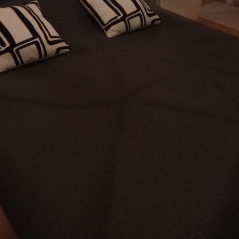 Vändbart. Rosor ena sidan och randigt andra sidan och vågig kant