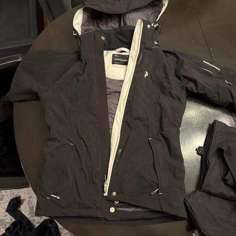 Peak Performance skidjacka i storlek XL. Använd cirka fem veckor totalt, nytvättad enligt konstens alla regler. Mindre svarta prickar från olja eller liknade, se bild.