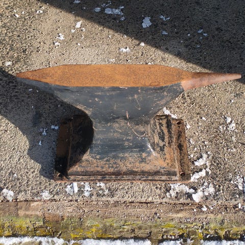 Fäste för JCB traktorgrävare, vet inte vilka andra maskiner den passar till. Bredd öppning 34 cm, djup 97 cm. Saknar två tänder.