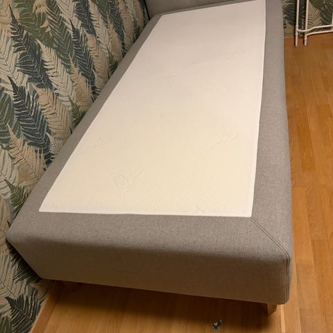 Sängen är i gott skick med normalt bruksslitage (se bilder). Madrass ingår och är ren och hel.