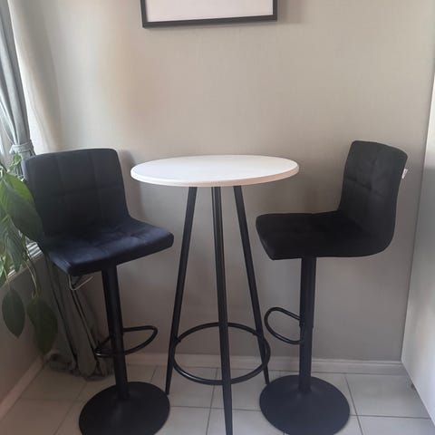 Använt som matbord, finns lite skavanker på stolarna men ser fint ut annars:)