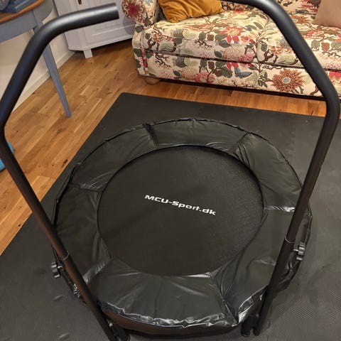 Trend Rehab trampolin med svart och röd färg. Passar för inomhusbruk och har en robust konstruktion med metallben.