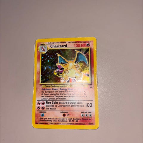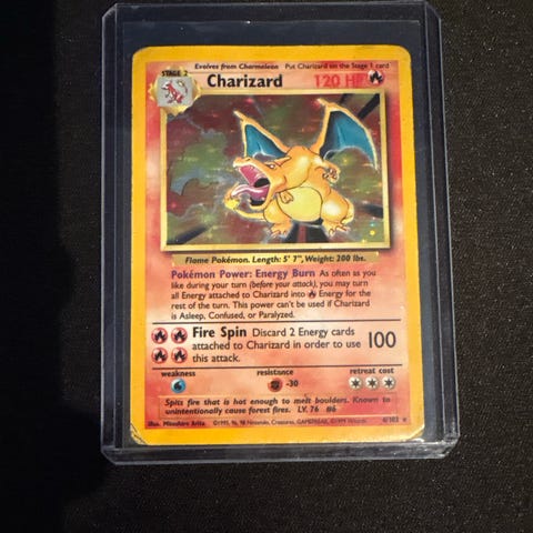 Pokémon Charizard 4/102, ägts av mig sedan sent 90-tal. Fint skick och bevarats väl.