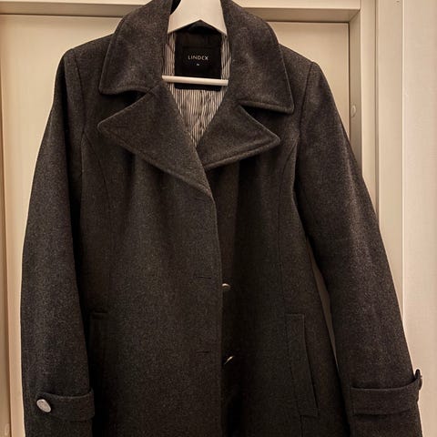 H&M Övriga jackor i grå färg, tillverkad i ullmaterial. Jackan är avsedd för dam och har storlek 36. Den har en dubbelknäppt design med knappar framtill och två sidfickor. Materialet ger värme och är lämpligt för kyligare väder.