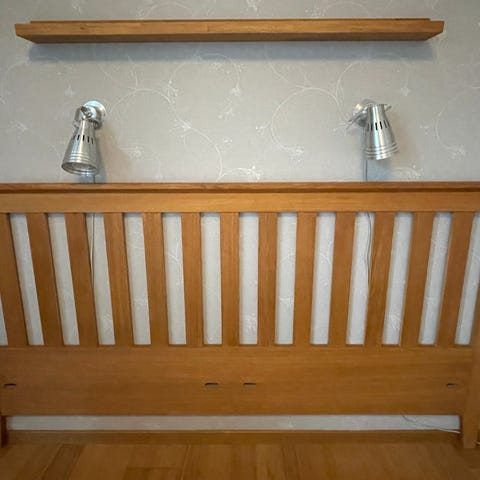 Till salu: en elegant Mio-sänggavel, nästan ny, 180 cm bred, 150 cm hög och 10 cm tjock, tillverkad av grått sammetstyg. Sänggaveln är i utmärkt skick, välvårdad och ger sovrummet en touch av lyx. Den nya gavlen kostar 7000 kronor.