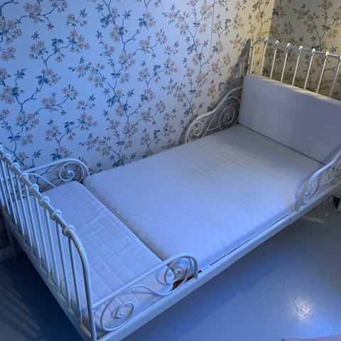 Madrassen är 80 cm bred och är utdragbar. Sängen har tre längder, den längsta är 2m.