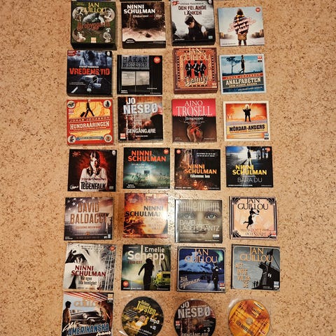 Ljudböcker för vuxna i fint skick. Böckerna som läses upp är I cirklens namn, änglar och demoner, da vinci koden & den sista hemligheten.
