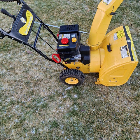 Rejäl snöslunga, bensindriven i bra skick, sparsamt använd. Lite ytrost på handtagen.