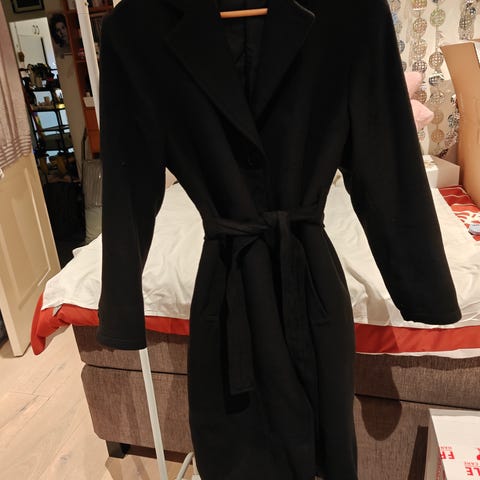 Ellos ullkappa i storlek S för dam. Plagget är svart och tillverkat av ullmaterial. Designad för att användas som ytterplagg.