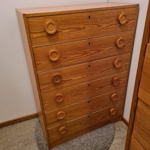 Stor, stabil byrå som lätt piffas upp av den som är händig. Ger plats för mycket förvaring.