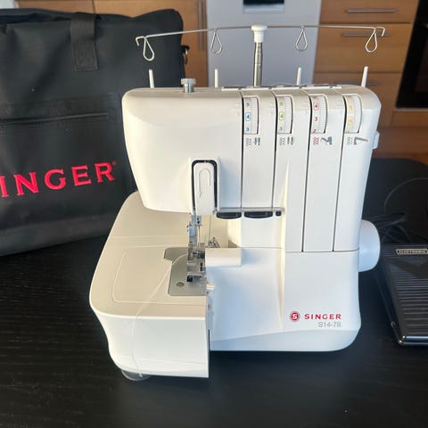 • Tillbehör: Skyddsöverdrag, trådställ, sömguide