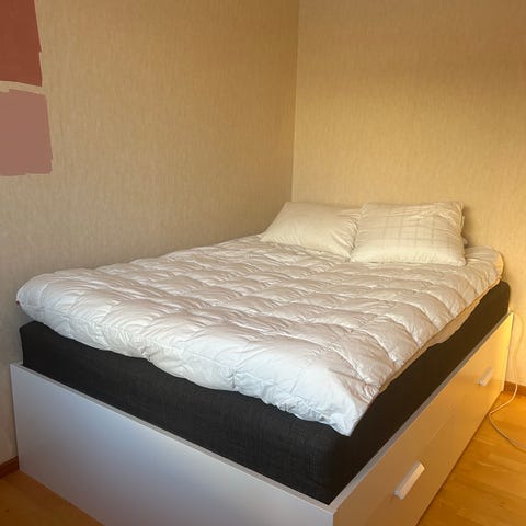 Sängstomme IKEA Malm 160x200 vit inklusive ribbotten Lönset samt 2st sänglådor. Nypris 3800:-