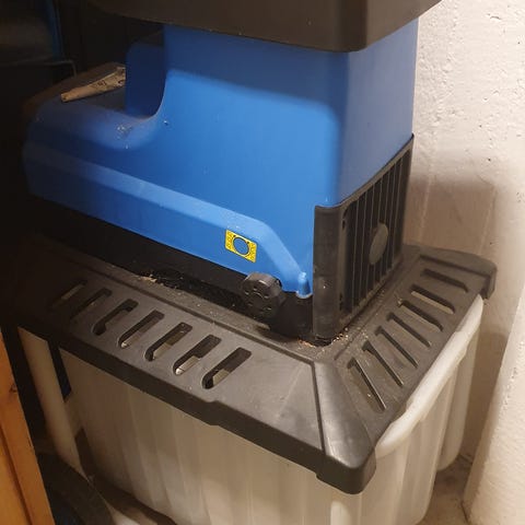Används för att mala grenar och trädgårdsavfall till kompost.
