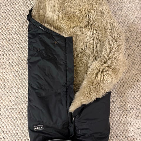 Åkpåse med yttre material i slitstark textil och innerfoder av fårskinn. Utrustad med dragkedja för enkel öppning och stängning. Designad för att ge värme och komfort vid kallt väder.