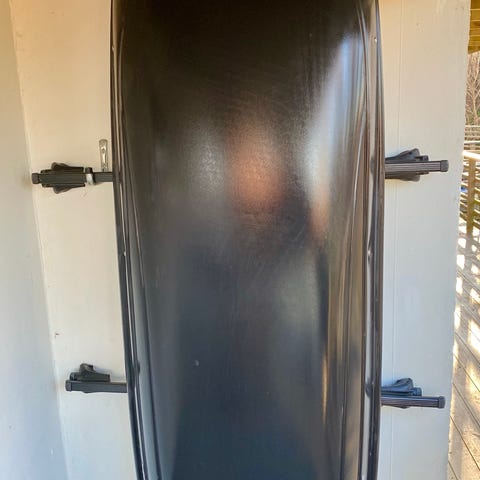 Packline sport takbox använd en gång med Thule justerbart takräcke. Boxen låsbar med nyckel. Takräcke som också är låsbart med nyckel. Boxen i blank svart färg. 220x85cm, ca 430liter volym. Säljes ihop.