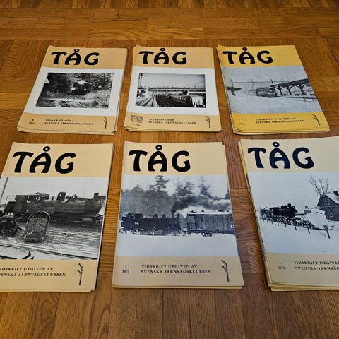 Tidningen Tåg 15 årgångar 1997-2012. Tror de är kompletta, osäker om det är hela 1997 och hela 2012.