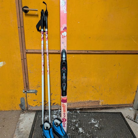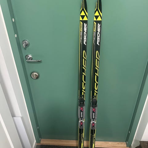 Fischer, rcs sprint crown, 130 cm (vallningsfria). Finns en liten skada bak på ena skidan( se bild)