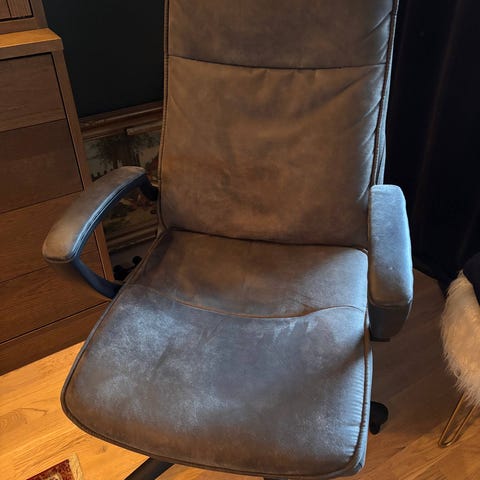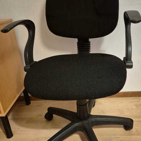 Rosa skrivbordsstol på hjul. Höj- och sänkbar.