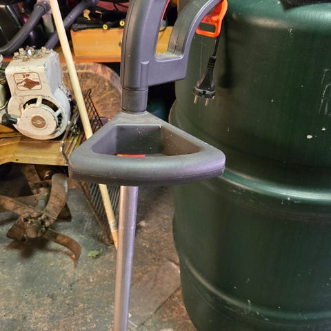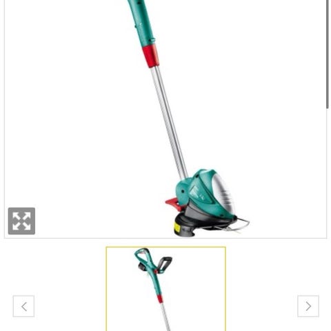 Bosch Grästrimmer för trädgårdsarbete med justerbar handtag och skyddskåpa. Används för att trimma gräs och kanter i trädgården.