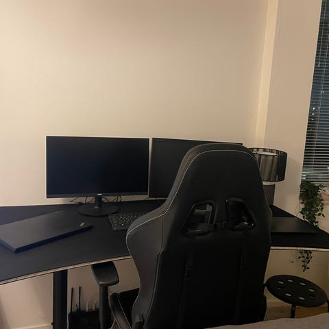 Säljer ett stabilt gamingbord av modellen Arozzi Arena. Detta är ett datorbord specifikt utformat för gaming och streaming, med en väl tilltagen yta (160 cm) som utan problem rymmer tre skärmar.