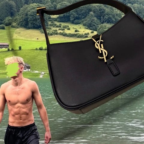 YSL plånbok tillverkad i läder, designad för unisex-användning. Plånboken har flera fack inklusive plats för kort och ID, samt guldfärgade metallhörn och dragkedja för säker förvaring.
