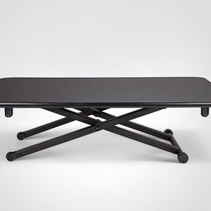 Ställbart fäste för att hänga upp stationär dator under bordsskiva.